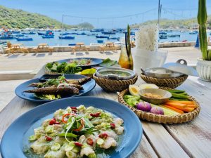 Enjoy your meals by the sea in family-run restaurants or floating seafood farms.